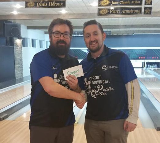 Place à la finale entre Bernier et Langlois. Philippe pris rapidement les devants par 36 quilles à la première.  Anthony réussit à retrancher 15 quilles au match suivant mais il était trop peu trop tard. Une victoire bien méritée pour Bernier, lui qui a dû franchir toutes les rondes de match-play pour gagner le tournoi. Son triomphe est accompagné d’une bourse de 1 000 $ tandis que le finaliste mettait la main sur 720 $. En tout et partout, 21 joueurs différents ont remporté une bourse. Rappelons que Philippe a aussi remporté le tournoi du circuit CCSQ au Quillorama Marieville la fin de semaine précédente. On peut dire qu’il a du succès sur les allées difficiles !